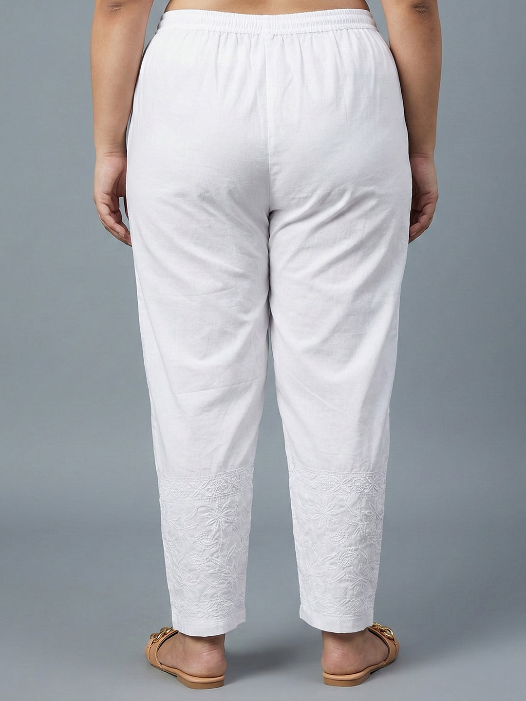 Step into effortless elegance with the NoorEase Lucknowi Cotton Pants. The delicate Lucknowi-style embroidery at the hem adds a refined ethnic charm, making them perfect for both everyday wear and special occasions.