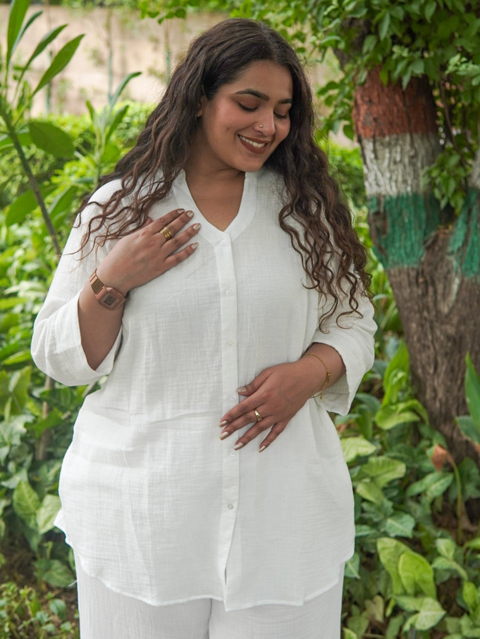 Breathe easy in the Snowdrop Comfy Set, crafted in soft, pure cotton for unmatched comfort, includes a relaxed-fit top and easy pull-on bottoms — designed to celebrate your curves and keep you cool all day.
