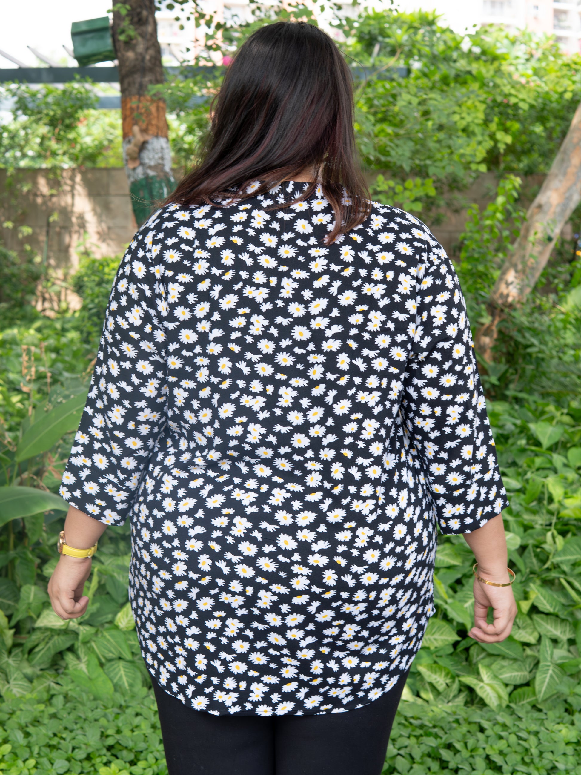 Add a touch of sunshine to your wardrobe with this beautiful kurta top. It features cheerful yellow blooms on a dark base, creating a fresh and vibrant look. The relaxed fit with hip-length coverage ensures all-day comfort and effortless style.