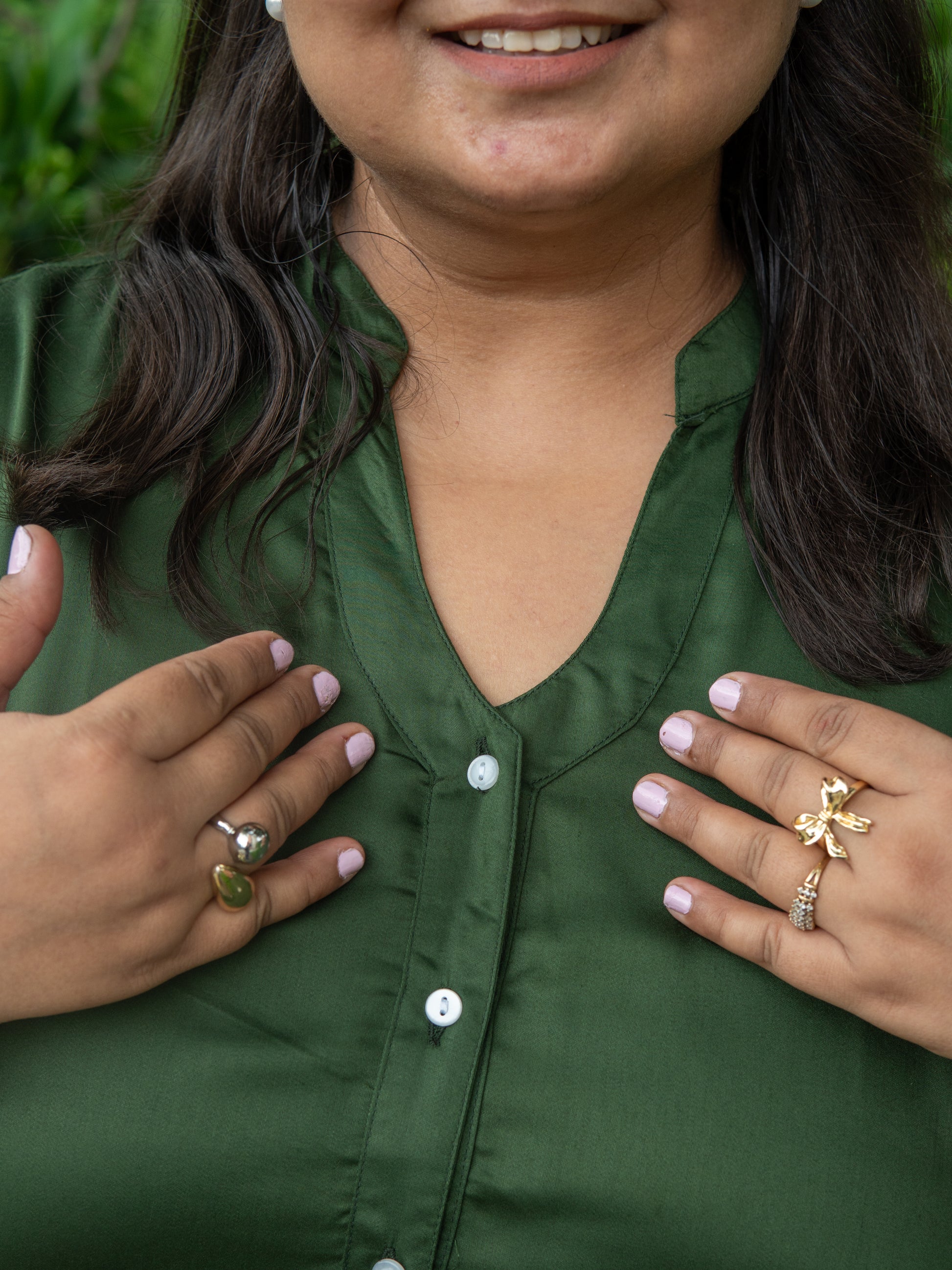 Elevate your everyday style with our Emerald Luxe Button-Down Shirt, crafted in a silky-smooth fabric that feels as luxurious as it looks. Designed in a rich rich green hue, this longline shirt offers a flattering, hip-covering fit perfect for plus-size women.