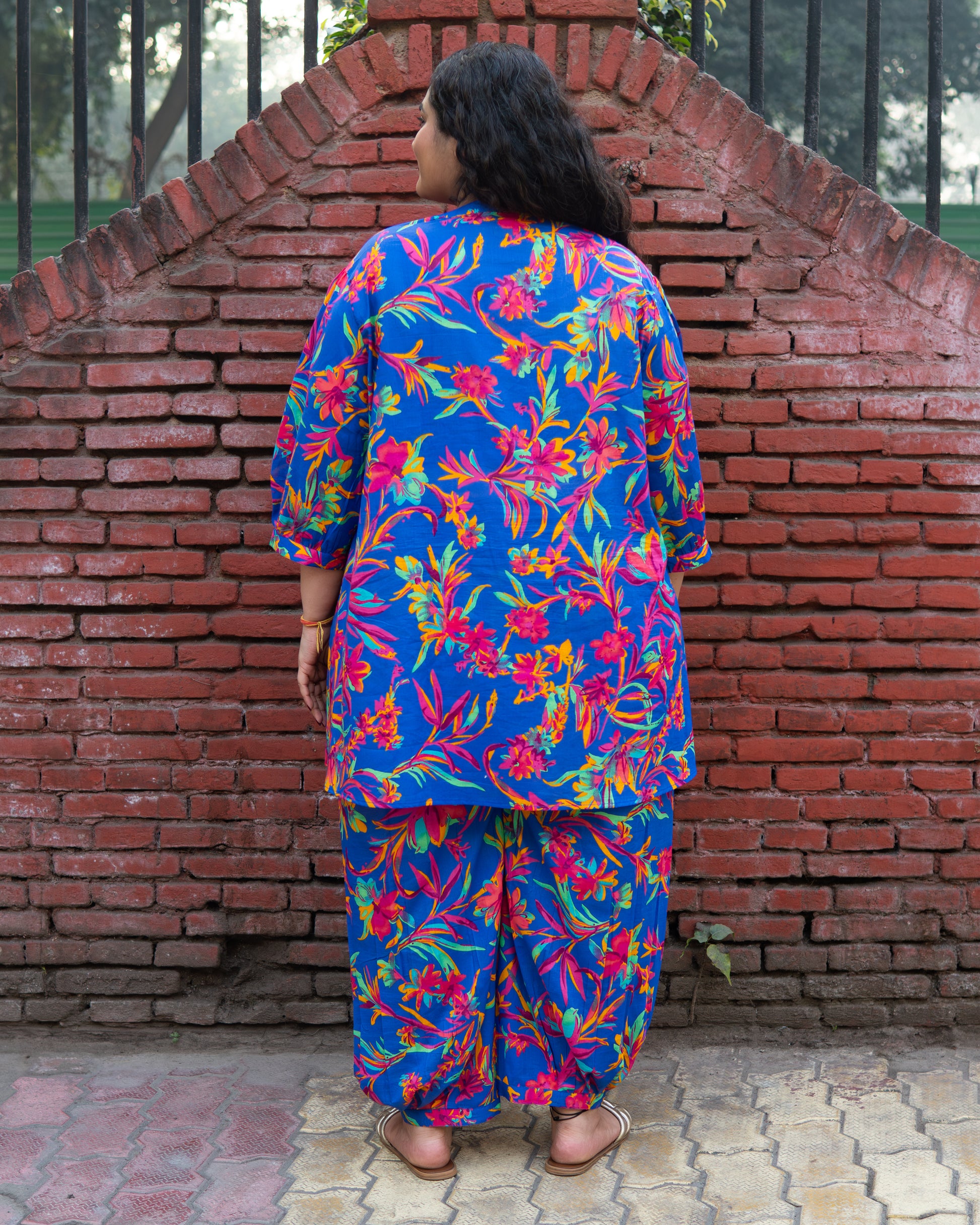 Designed for effortless comfort and graceful movement, this CurveFlow co-ord set features a breezy A-line tunic paired with a relaxed Afghani salwar. Crafted in soft, breathable fabric, it offers an easy drape that flatters plus-size curves while keeping you cool all day.